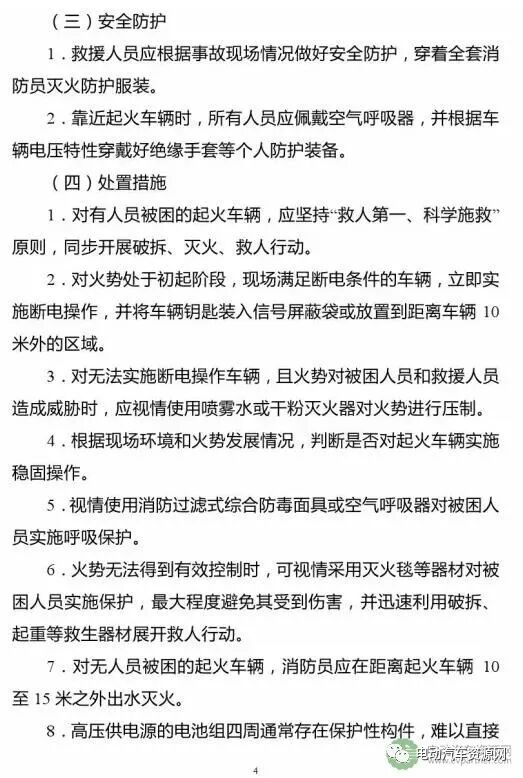 在此不得不感叹我们国家消防部门跟进速度之快,迅速推出了《新能源汽车火灾扑救规程》,有时间的朋友可以在网上搜索详细查阅该规程,EV新出行也将流程做了简单归纳,方便大家快速理解。