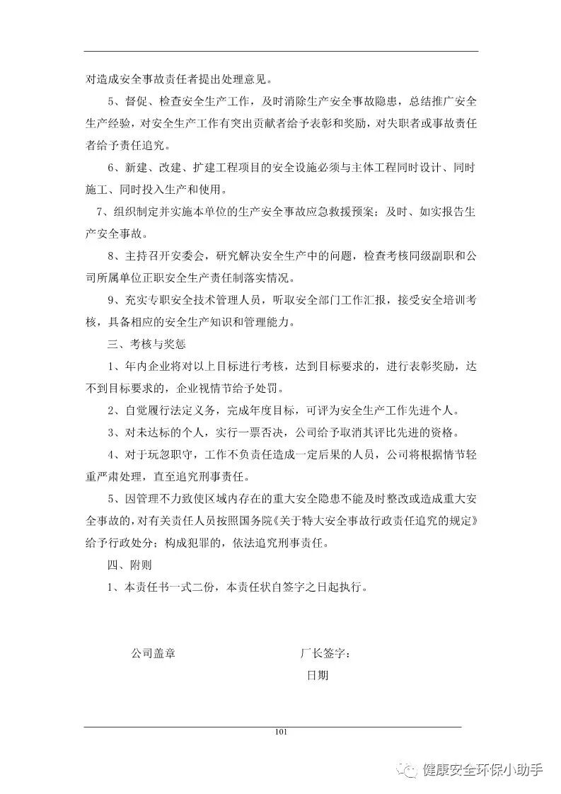 没有签定责任书,即安全生产责任不明确,