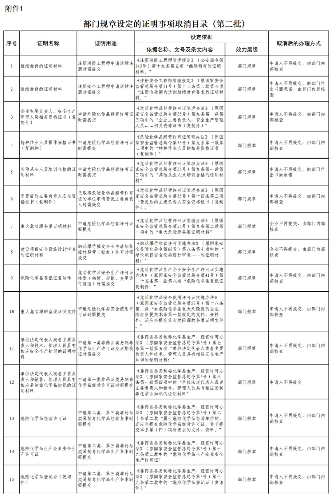 1.部门规章设定的证明事项取消目录(第二批)