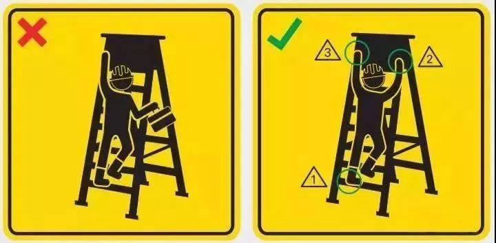 6、使用梯子时,必须维持三个接触点的攀爬法。