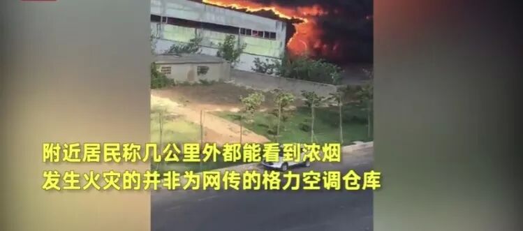 5月10日,河南漯河一格力物流园发生火灾,事发区域附近浓烟蔽日,当地消防人员告诉记者,该区域格力空调一仓库发生火灾,未接获人员伤亡报告。