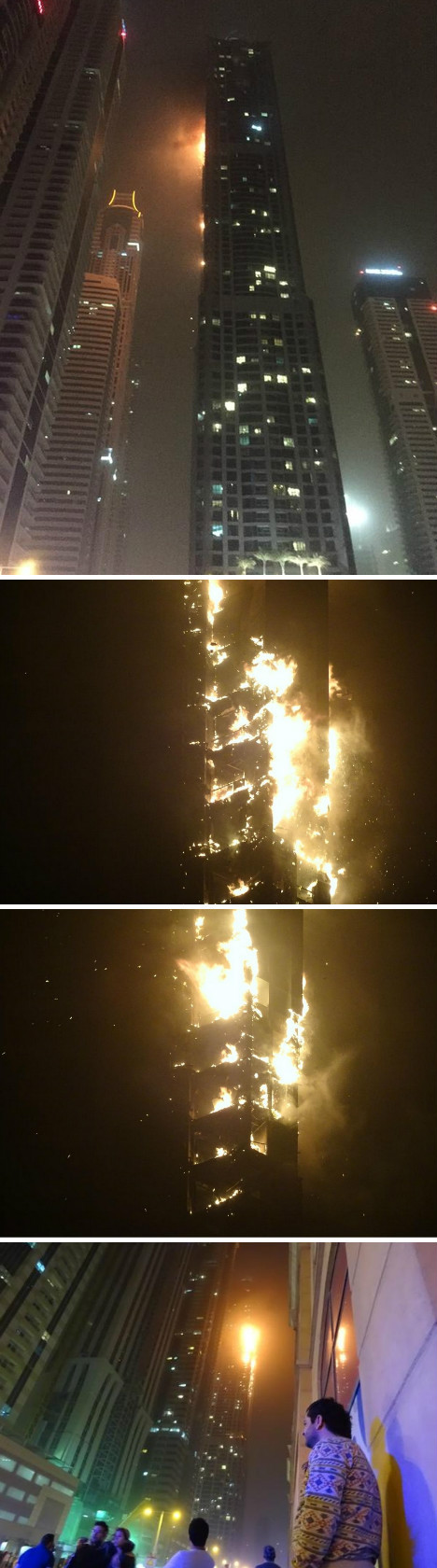 报道称,起火的大楼名为“火炬”(MarinaTorch),高336米,是世界上最高的住宅楼之一。据当地媒体《海湾新闻》报道,该楼第57层开始起火,并迅速蔓延至其他楼层。记者在现场看到,距离事发地约两公里处已拉上警戒线。由于现场风大并伴有沙尘暴,为防止高空坠物,警察不允许人们靠近大楼。