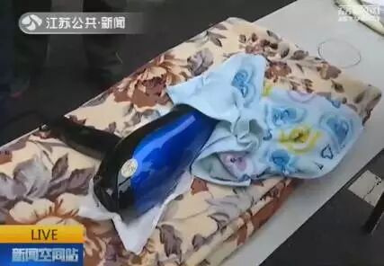 消防人员又将吹风机平放在毛毯上,并将毛巾直接覆盖在电吹风的吹风口上。