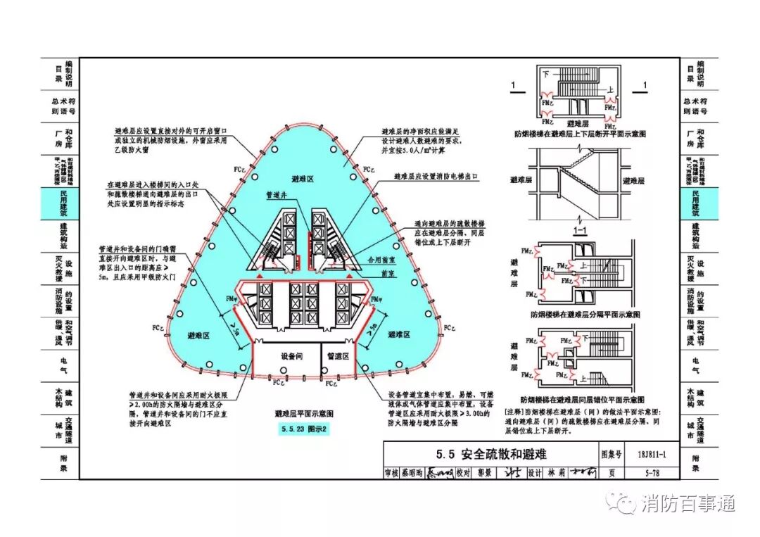 6、5-78页:修改防烟楼梯灾避难层同层错位平面示意图的注释。