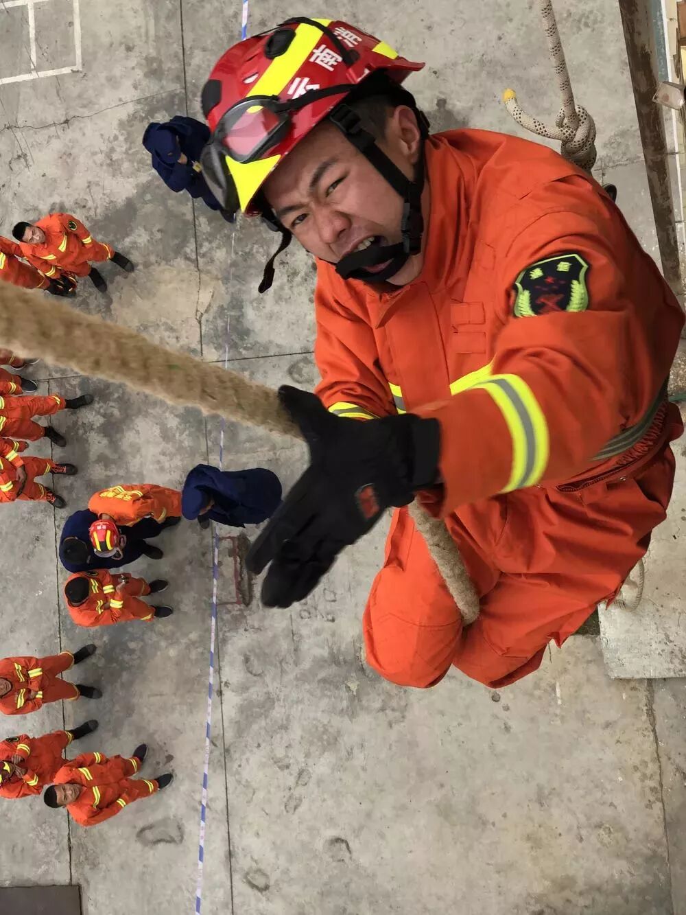 通过开展沿绳索攀登4楼训练,培养消防员外部救援、安全自救能力。