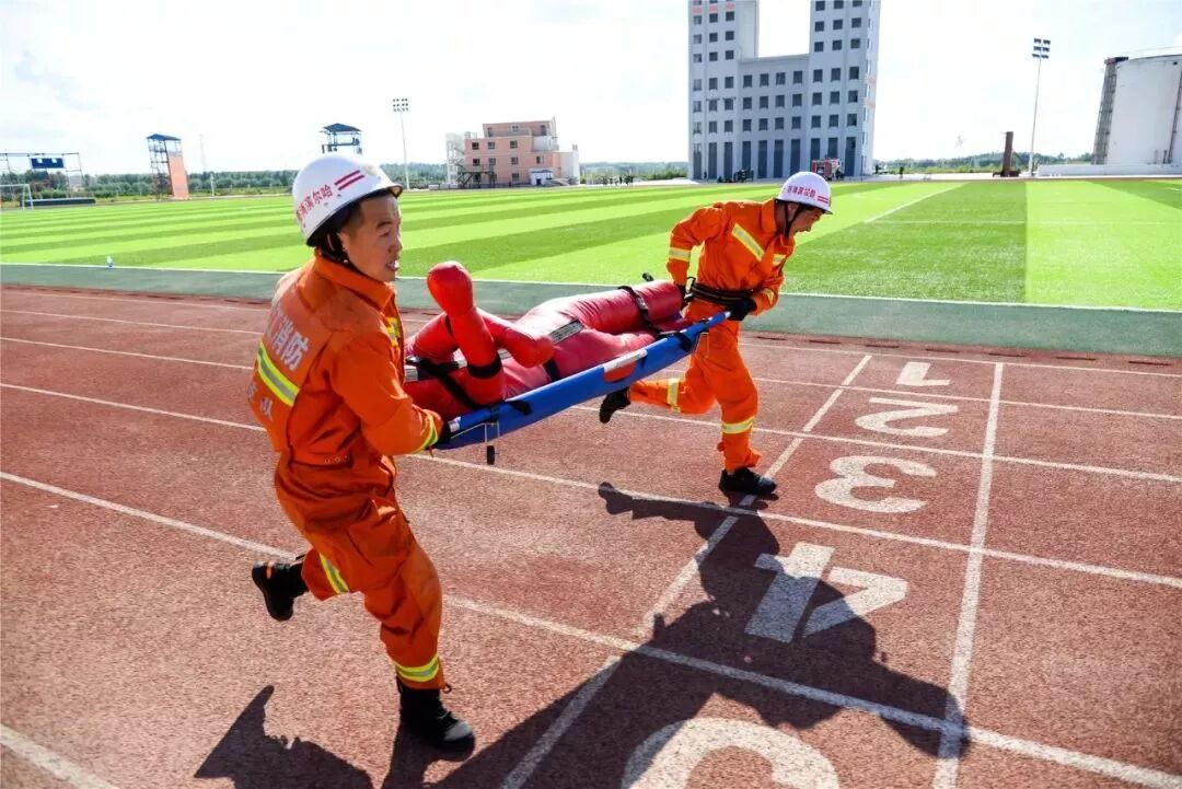 通过背负10公斤空气呼吸器跑5公里的适应性训练,检验消防员负重作业承受能力,满足火灾扑救时长时间背负空气呼吸器作业需要。