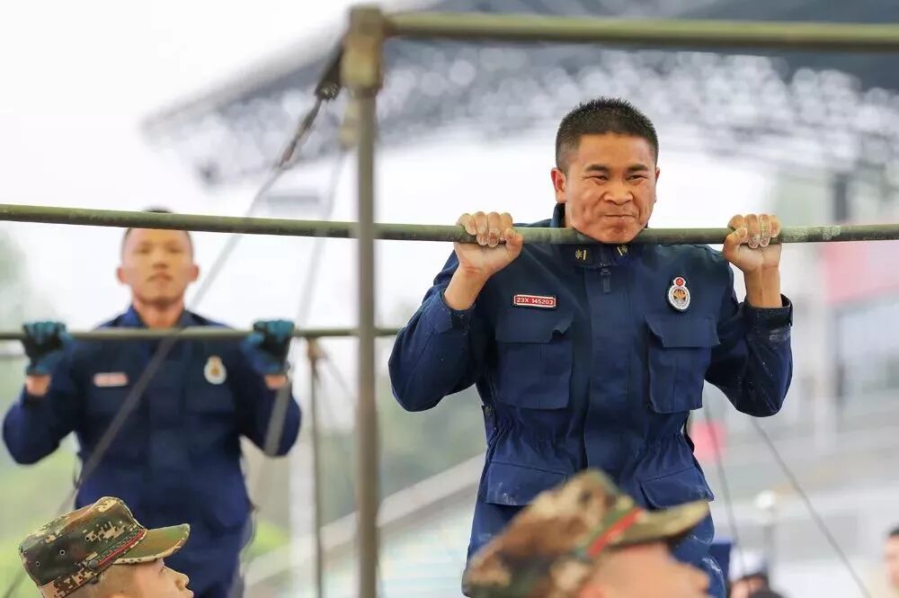 通过开展单杠卷身上、双杠曲臂撑传统的力量训练,培养柔韧、灵活的消防队员。