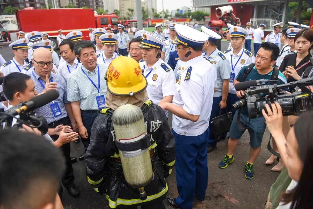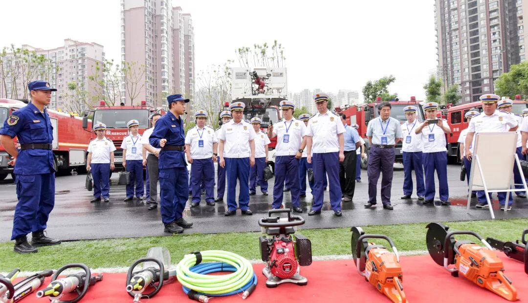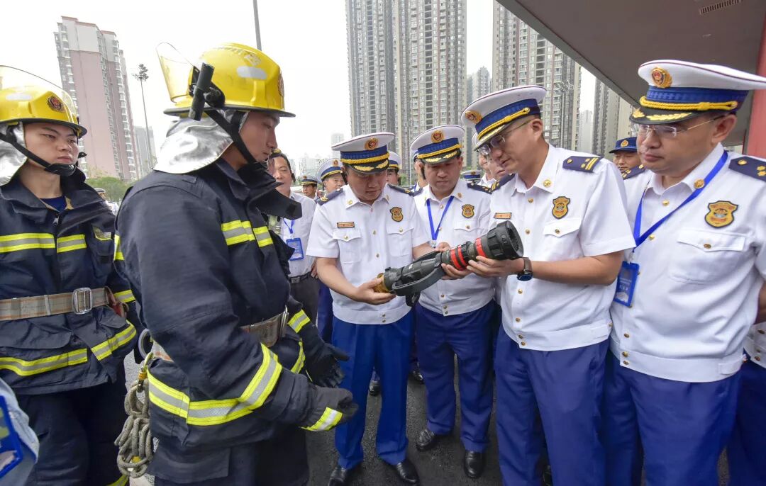 在成都天府新区消防救援大队,参会人员详细了解了城市灭火冲锋队的建设情况,观看了最新装备技术操作演示。