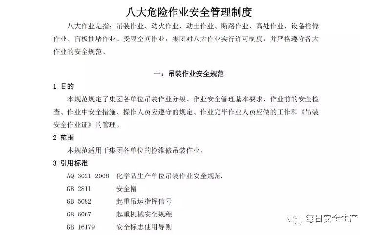 八大作业安全规范!详细具体,必须收藏! |