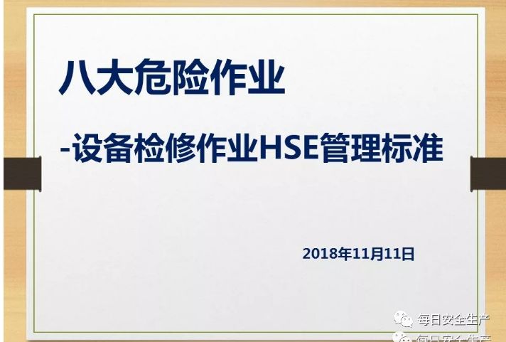 八大危险作业丨设备检修作业HSE管理标准 |