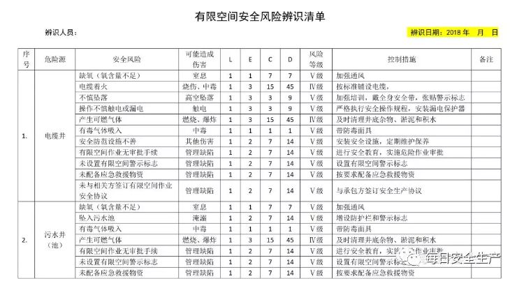 有限空间作业风险辨识清单,20种!齐了! |