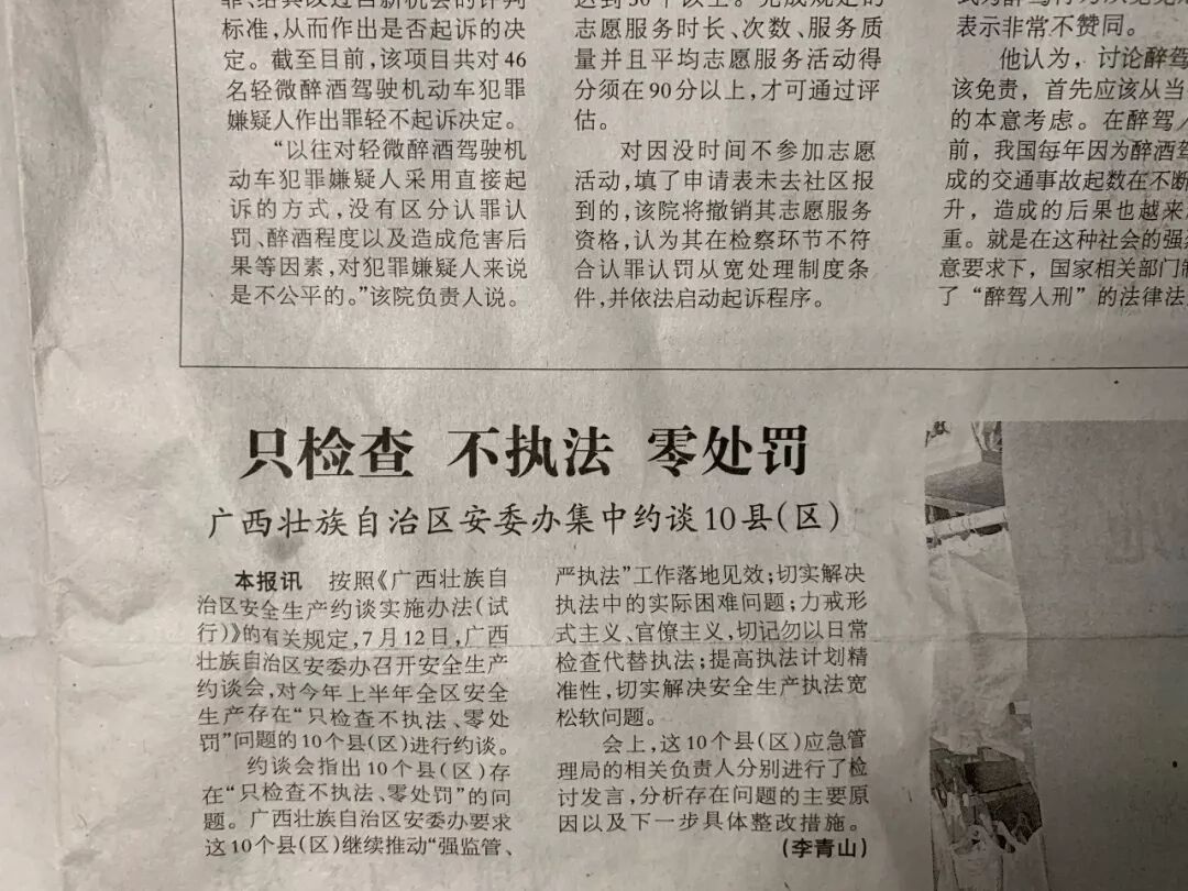 如当前各类检查繁多,所谓的“地毯式、拉网式、全覆盖、无死角、无遗漏”“横向到底、纵向到边”这样的上级有关部门做出的检查要求,以及为处罚而罚的所谓解决“零处罚”问题,看似加大了处罚力度,但却违反了有关法律法规,这是企业及有关部门必须关注的。微信公众号一篇《检查不是执法?执法等于处罚?》反映了当前在安全生产执法上存在的问题。