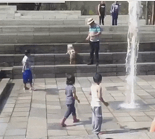 一个喷泉池就这么好玩?