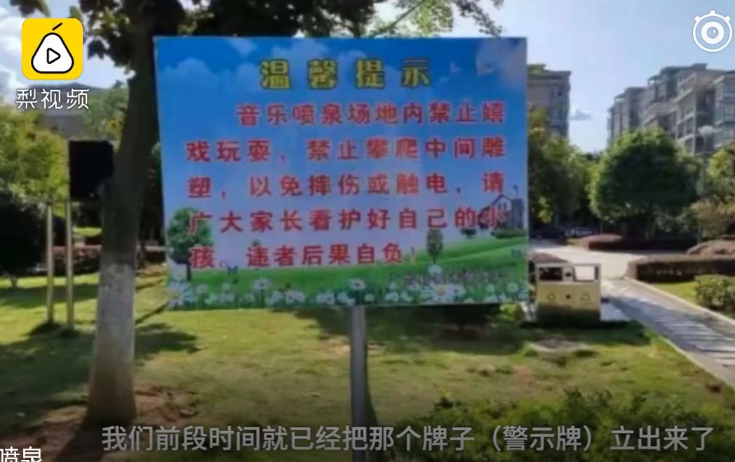 园林管理所回应,当时有工作人员在现场提醒,但“喊破了喉咙都没人理”。晚上喷泉那儿确实人多,前段时间已经立起了警示牌,要求家长看护好自己的孩子。