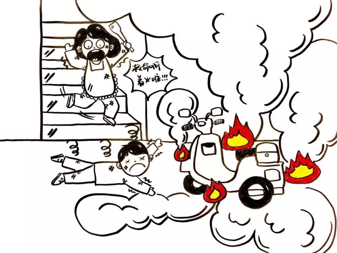 电动自行车停在疏散通道、安全出口、楼梯间、室内等地违规充电极易引起火灾,电动车燃烧产生黑烟,导致楼房内光线不足,严重影响疏散逃生。