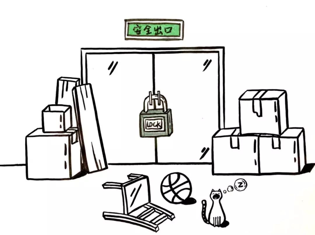 疏散通道是发生火灾后的生命通道,一旦上锁、堆放杂物,