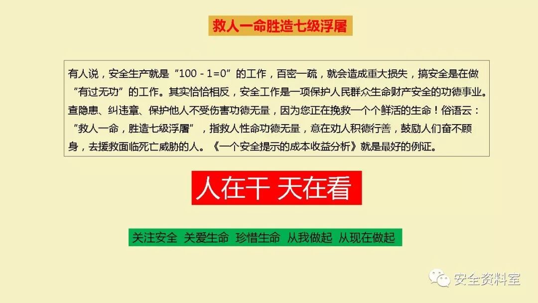 链接:PPT:精典安全生产意识培训 https://mp.weixin.qq.com/s?__biz=MzI0NzM4MDgyOA==&mid=2247494340&idx=1&sn=a0576ca1c484b95ce2d43c02ed3046f3&chksm=e9b244f7dec5cde1db5e438ac1dd27604b96098677af018e7a1850acd4b5a25e0632068ee4d9&mpshare=1&scene=23&srcid=&sharer_sharetime=1572482404419&sharer_shareid=d9fdcc60a46951fed6d7a0bbdd004814#rd