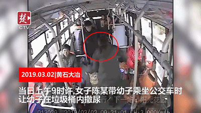 直接在公交车上的垃圾桶内撒尿。