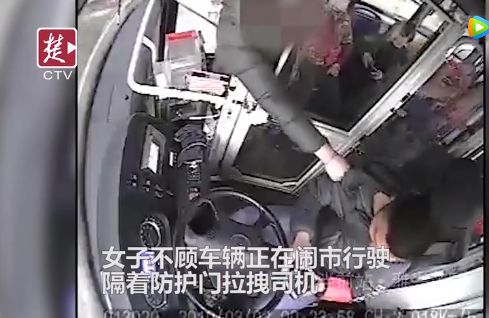 拉拽正在驾驶中的公交司机