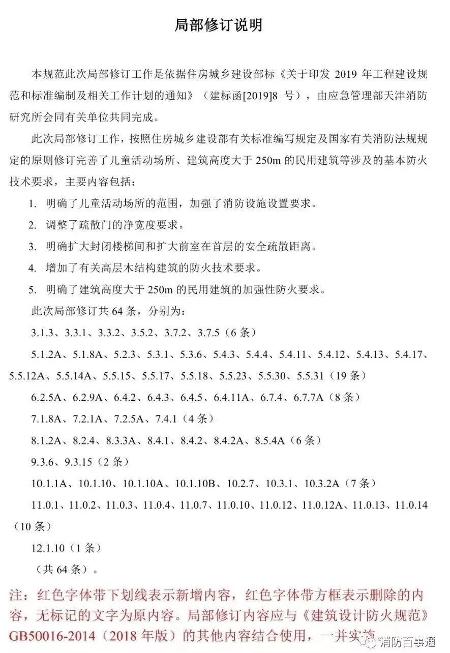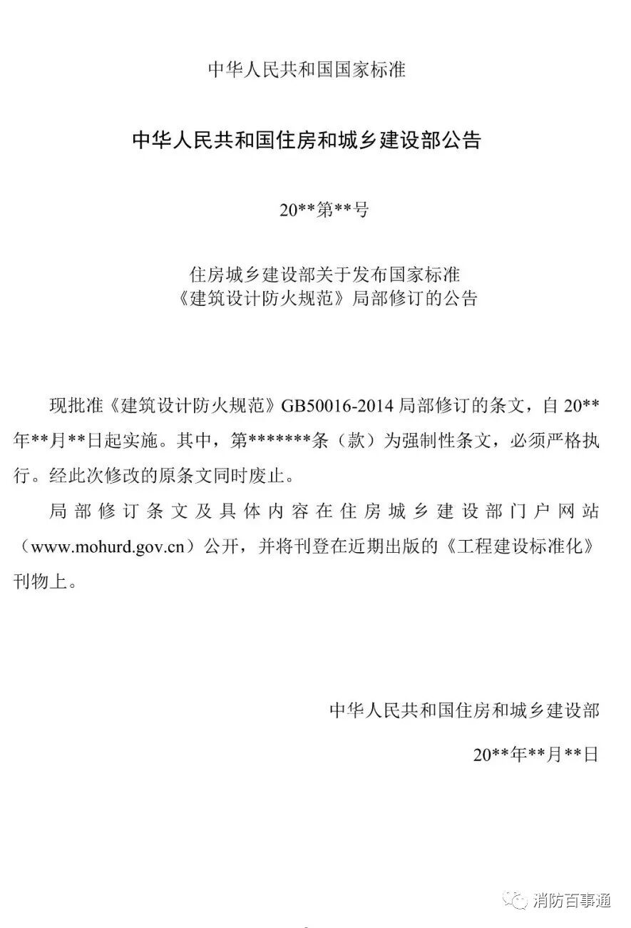《建筑设计防火规范》GB 50016(局部修订征求意见-201911)公告如下: