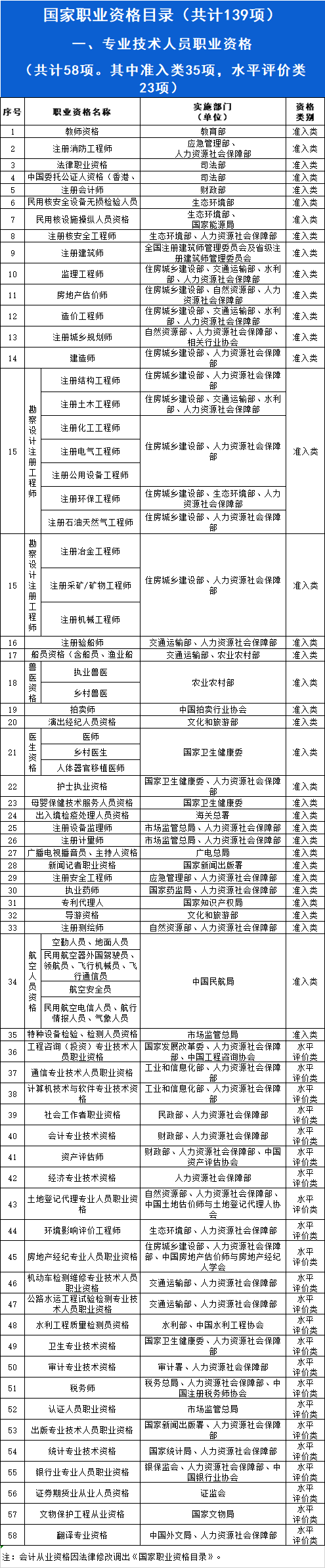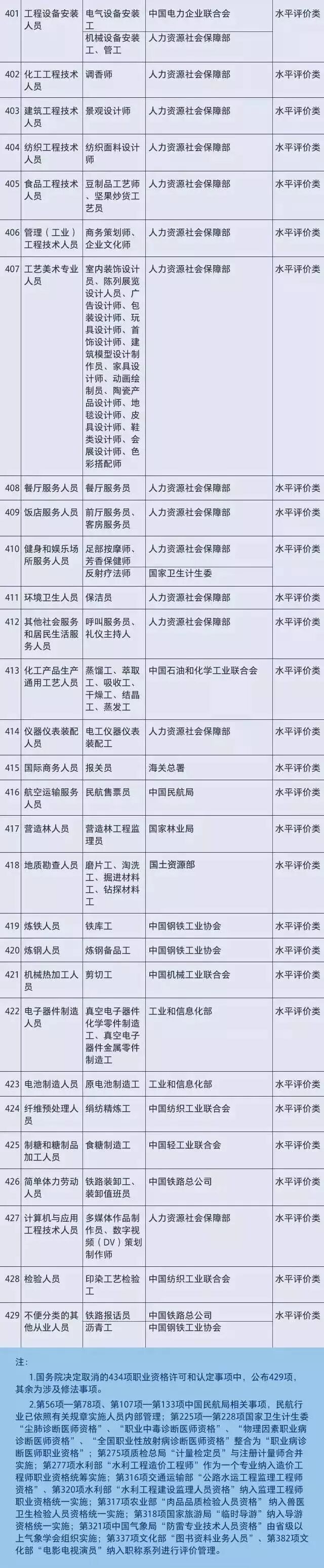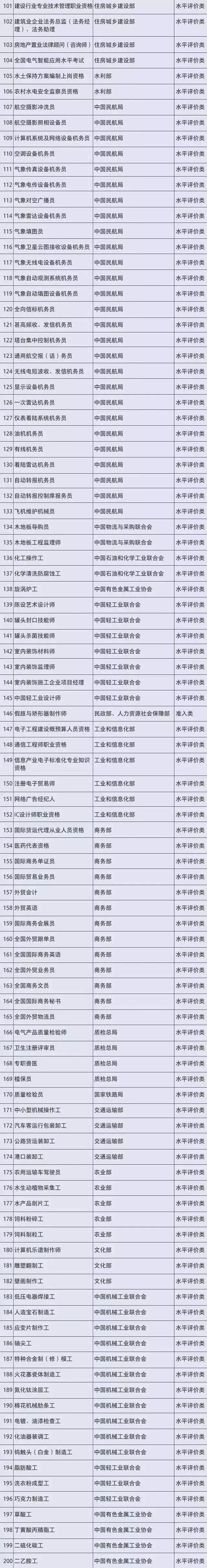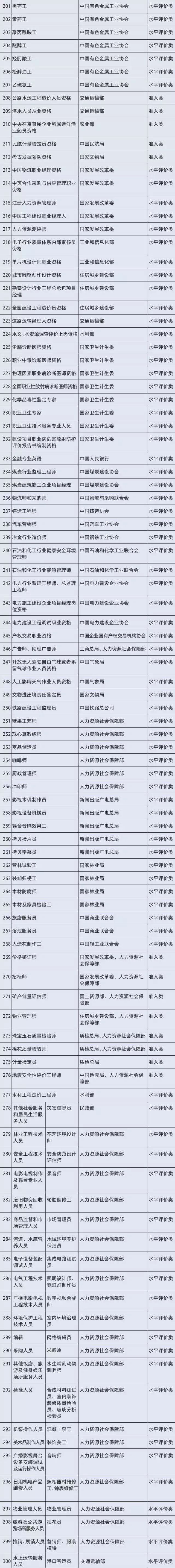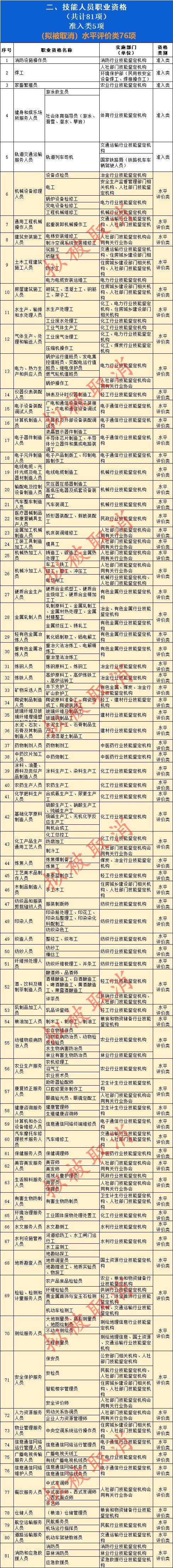 国家职业资格目录分为两大类,“专业技术人员职业资格”和“技能人员职业资格”,拟被取消的是技能人员职业资格的水平评价类证书。本次调整拟将安全评价师、电工、化工总控工、电梯安装维修工、锅炉操作工、锅炉检修工、机械维修工、消防员、测量员......等76项职业资格取消。