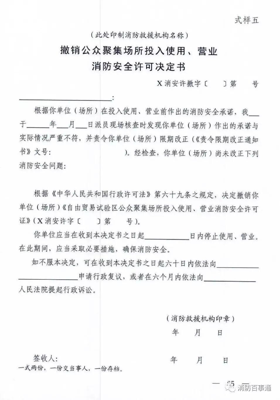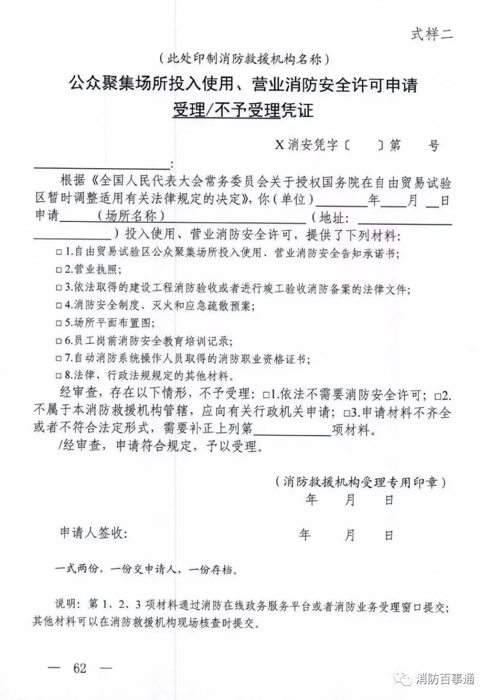 公众聚集场所投入使用、营业前消防安全检查。根据规定,当事人承诺符合消防安全标准并提供相关材料的,消防救援机构不再进行实质性审查,当场作出审批决定。