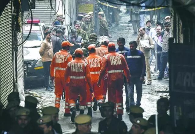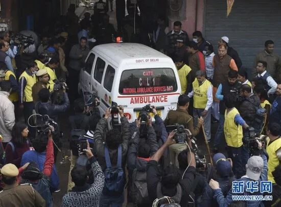 印度新德里,救援人员前往火灾现场。新华社发