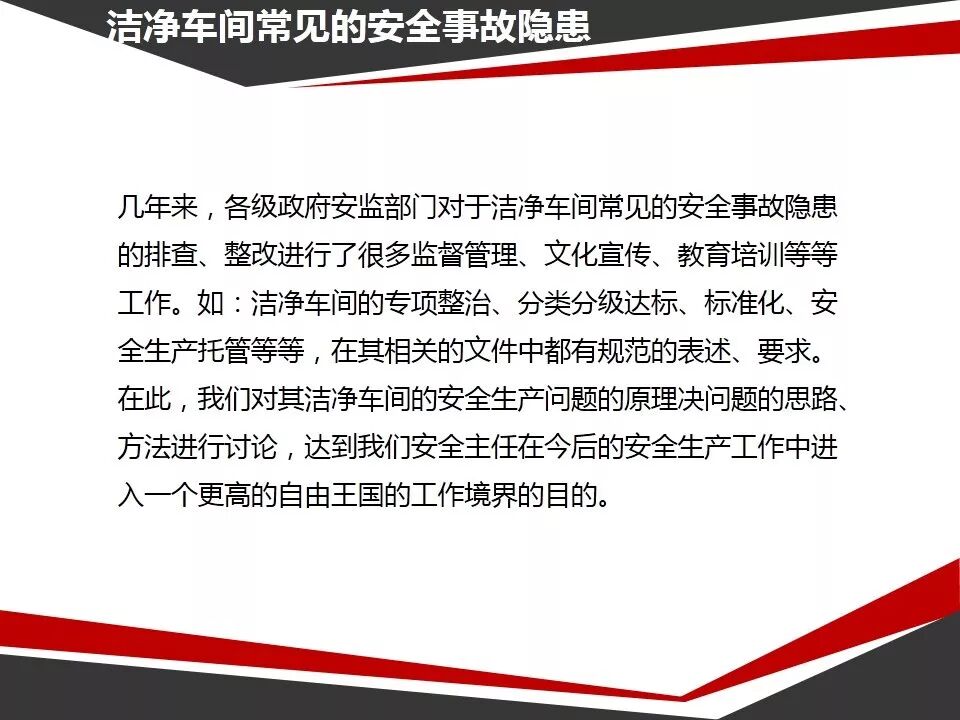 链接:洁净车间安全管理|PPT https://mp.weixin.qq.com/s?__biz=MzA3NDc4NTA2Nw==&mid=2649287150&idx=2&sn=825c7e1d3748d421b4c4567aaf31c771&chksm=8766c1aab01148bc9407d21356d54e54d689c2134b3198da86eefcfa092f5ddc512fbd0fc725&mpshare=1&scene=23&srcid=&sharer_sharetime=1576109416490&sharer_shareid=d9fdcc60a46951fed6d7a0bbdd004814#rd