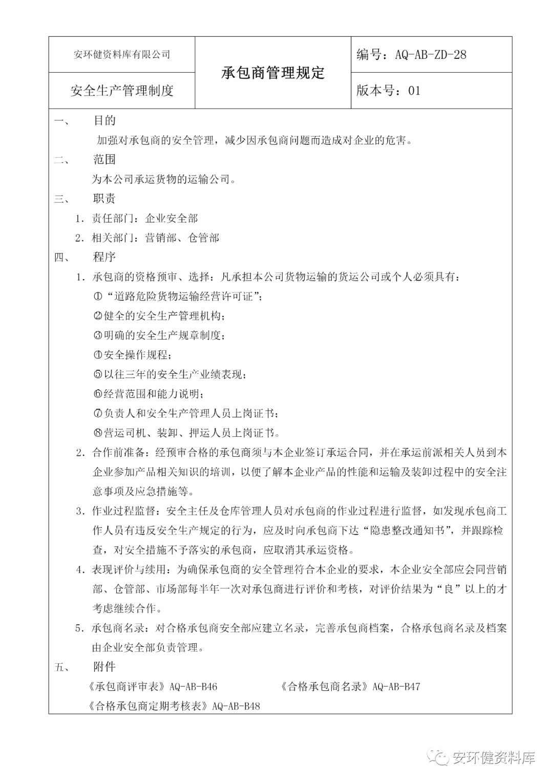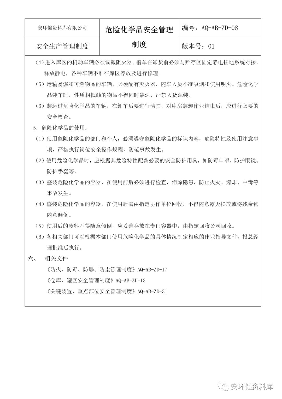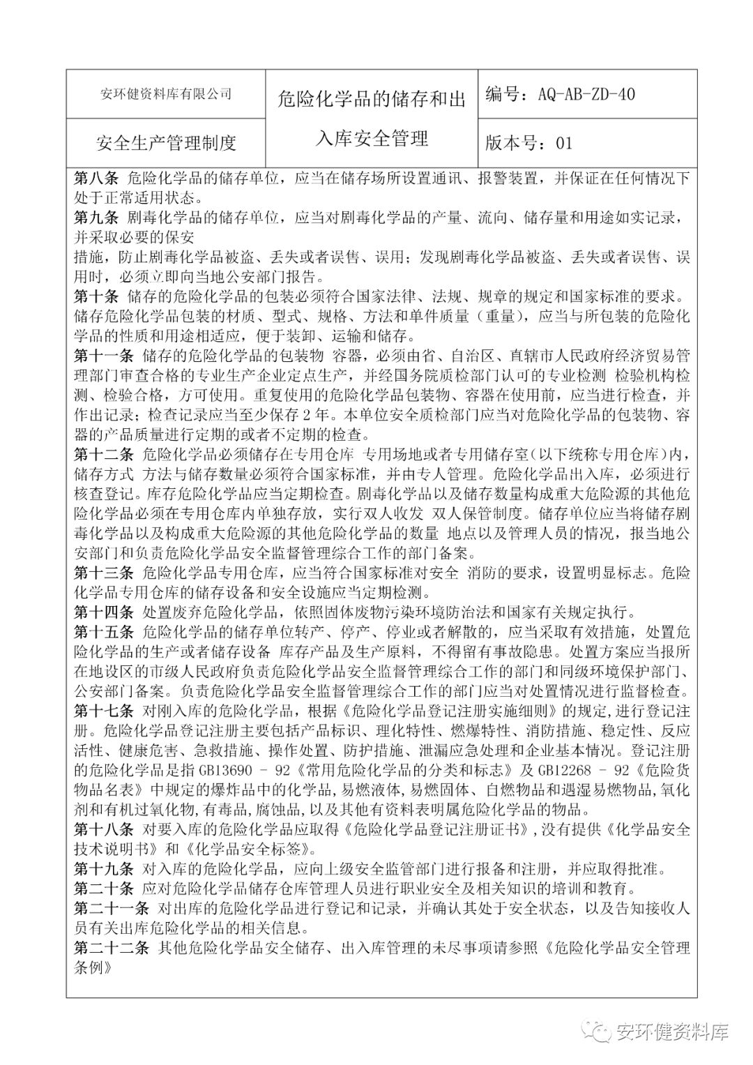 链接:危化品企业安全标准化管理制度大全 https://mp.weixin.qq.com/s?__biz=MzA5NDA4Njg4NQ==&mid=2652487840&idx=4&sn=692f81a1a2b830bc7b4135333b73f07b&chksm=8bbe932abcc91a3ca6f9d33d564c47488130b8b54e536322bd8a4ec11a685040f438b4c30248&mpshare=1&scene=23&srcid=&sharer_sharetime=1576110025179&sharer_shareid=d9fdcc60a46951fed6d7a0bbdd004814#rd