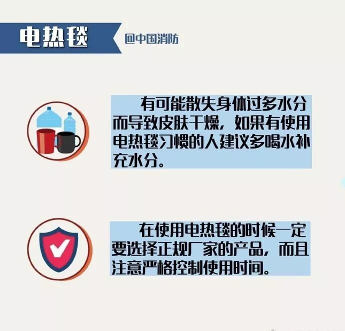 1.不要彻夜使用电热毯!即便是合格的产品,也非常容易引起火灾和漏电。被窝暖和了拔掉电源再睡觉,切忌彻夜使用。