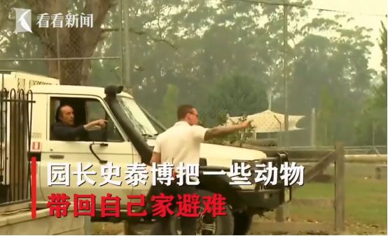 新南威尔士州一名动物园园长,把园里的上百只动物,包括狮子、猩猩、斑马、小老虎、猴子和小熊猫,统统带到了自己家里避难。