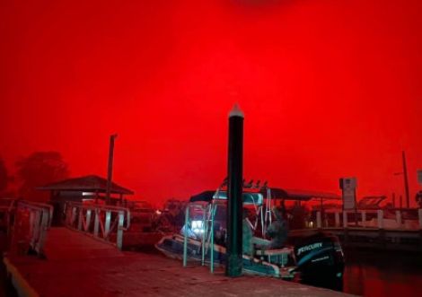 维多利亚州的天空甚至被大火染成血红色,犹如世界末日。