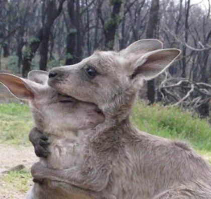 大火中,一对紧紧抱在一起的袋鼠。