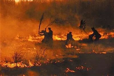 后来,三处大火合并,形成史无前例的巨大火场。