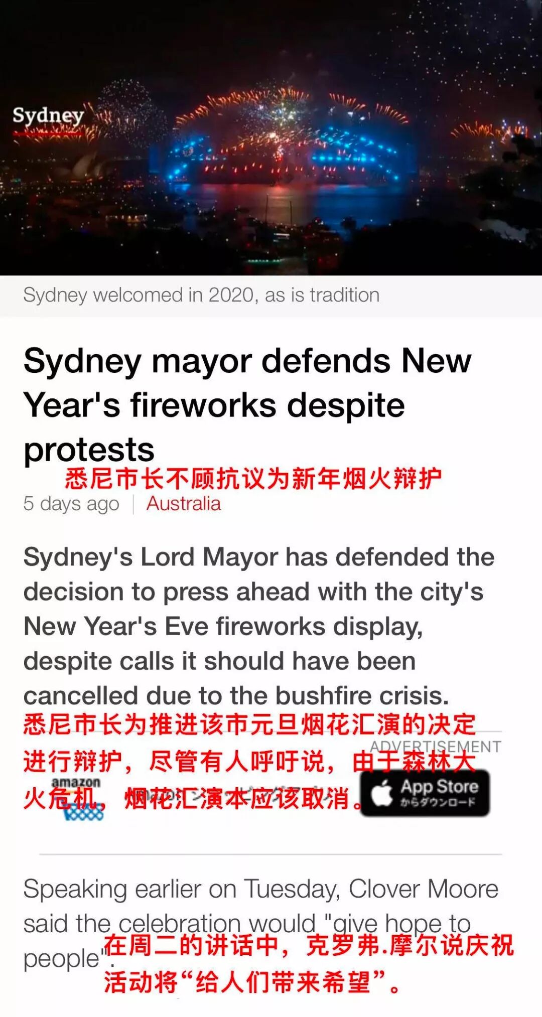 在悉尼市长强烈要求下,烟花汇演如期举行。