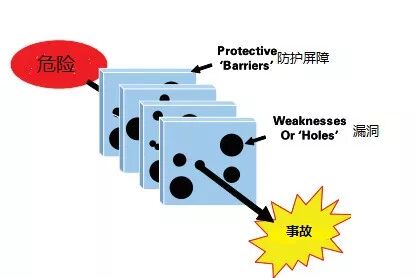 ▲瑞士奶酪事故模型从上图的奶酪模型中,我们可以看出:
