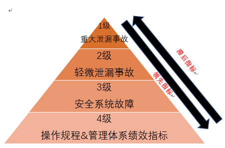 ▲过程安全层级:事故主要有4个级别,最顶端的为影响最大,发生频率最低的事件