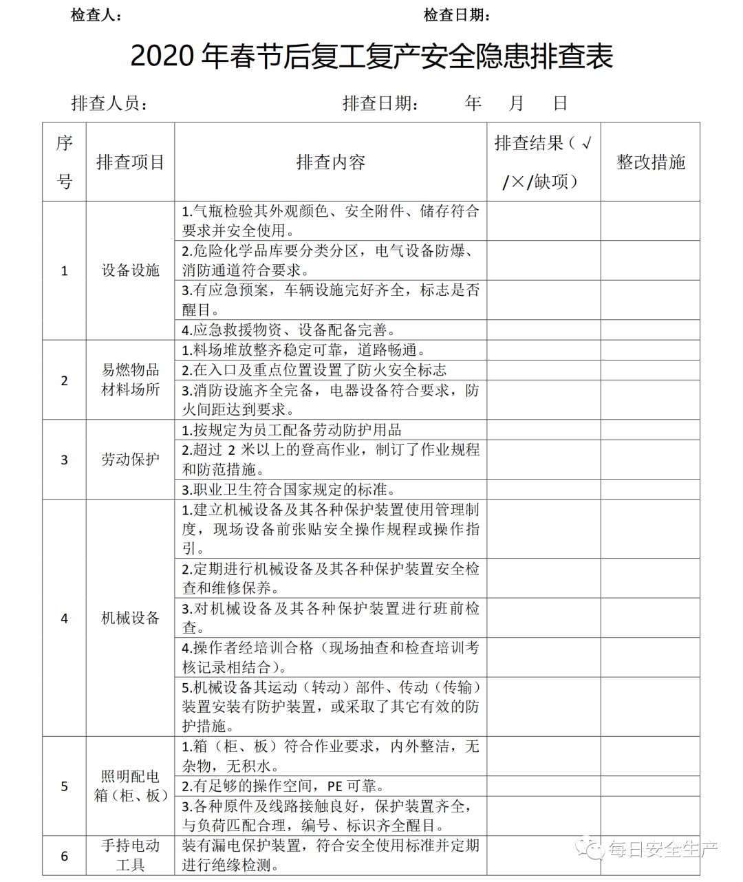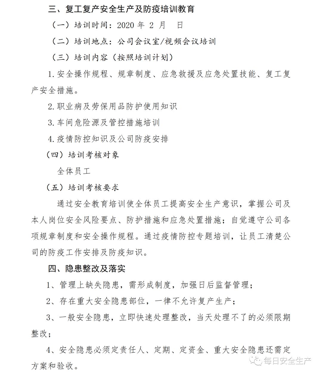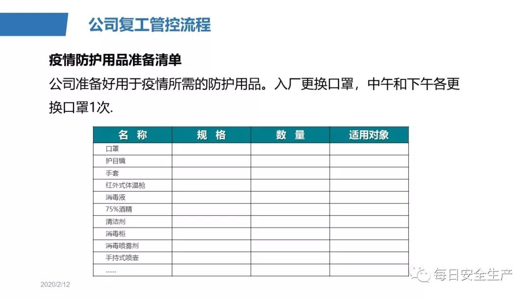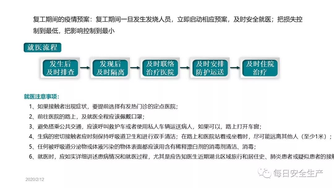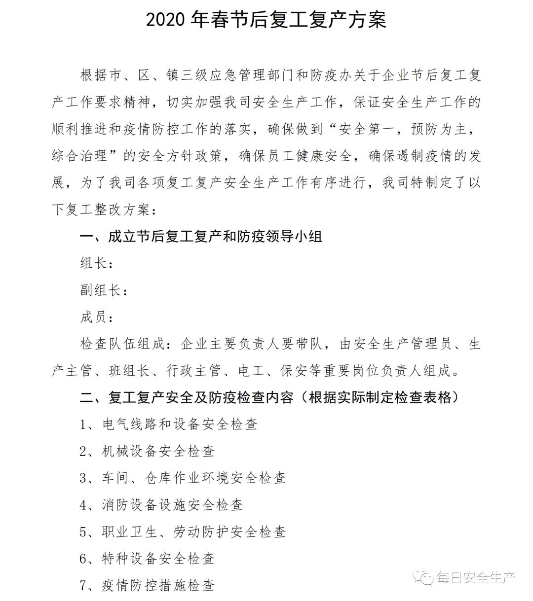 链接:清晰明了!三步法:做好复工后的安全生产及防疫工作!方案、检查表、课件...... https://mp.weixin.qq.com/s?__biz=MzU2NTI0MDM3Ng==&mid=2247583638&idx=1&sn=16c1afcdf1b1d16d715a7934d9232115&chksm=fcbd70c1cbcaf9d7f45d04695084ad717274a4800a89fea2d159412807ab6a76c600807666b2&mpshare=1&scene=23&srcid=&sharer_sharetime=1581553107104&sharer_shareid=d9fdcc60a46951fed6d7a0bbdd004814#rd