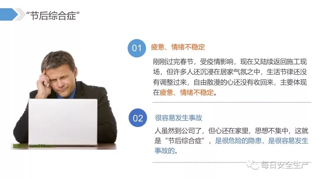 复工复产时段历来为各类生产安全事故易发高发时期,今年受新型冠状病毒疫情影响,公共卫生安全和企业生产安全风险叠加,复工复产安全管理任务重、压力大,企业要高度重视、格外小心,采取有效措施积极应对各类不利因素。