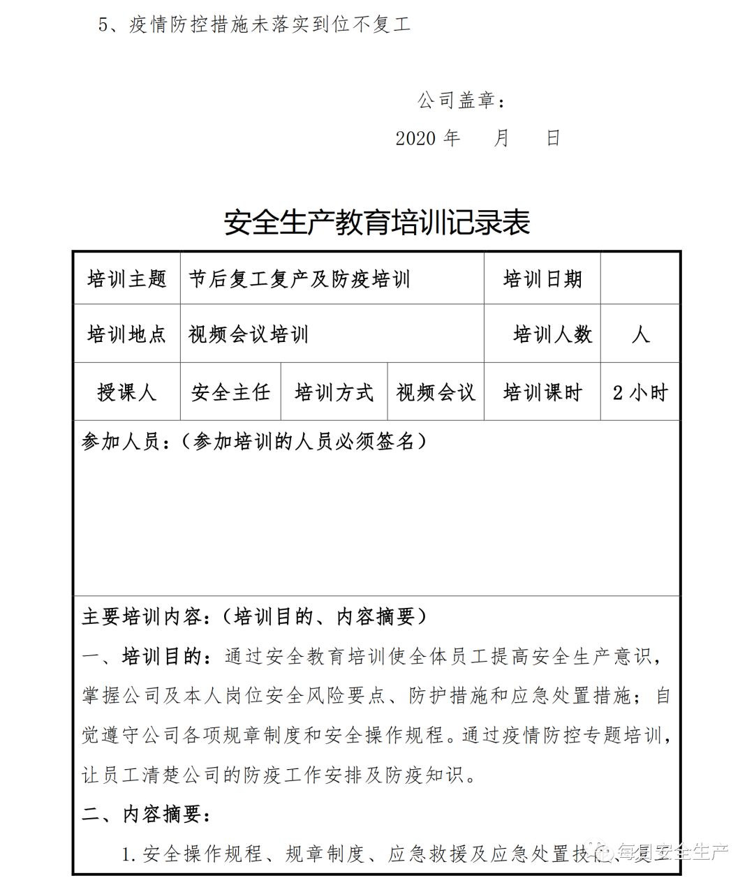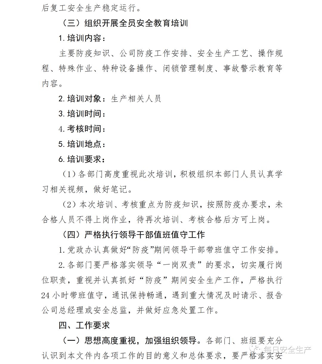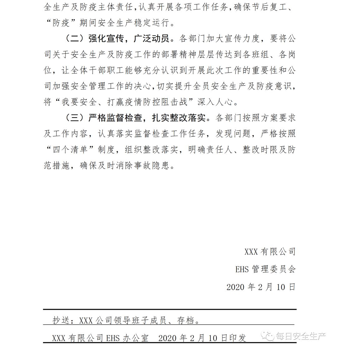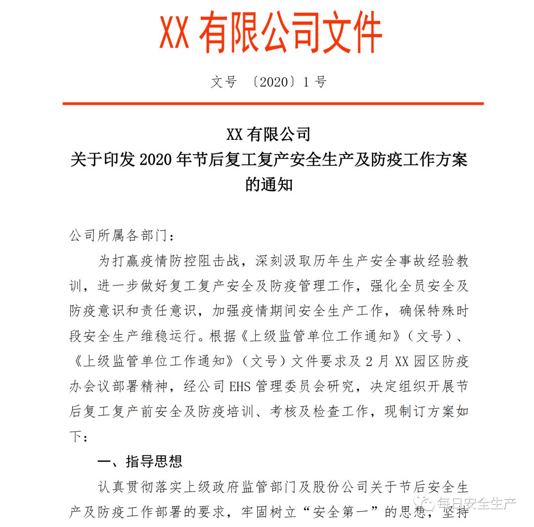 第一步:制定下发复工安全生产及防疫工作方案