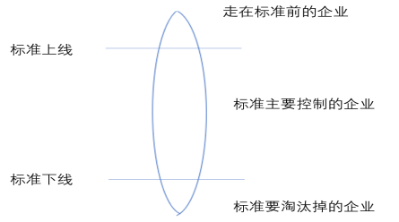 第二条线代表标准应该定的底限,线下都是已经不适应目前国家经济发展和行业发展形势的企业。这样的企业也是少数。