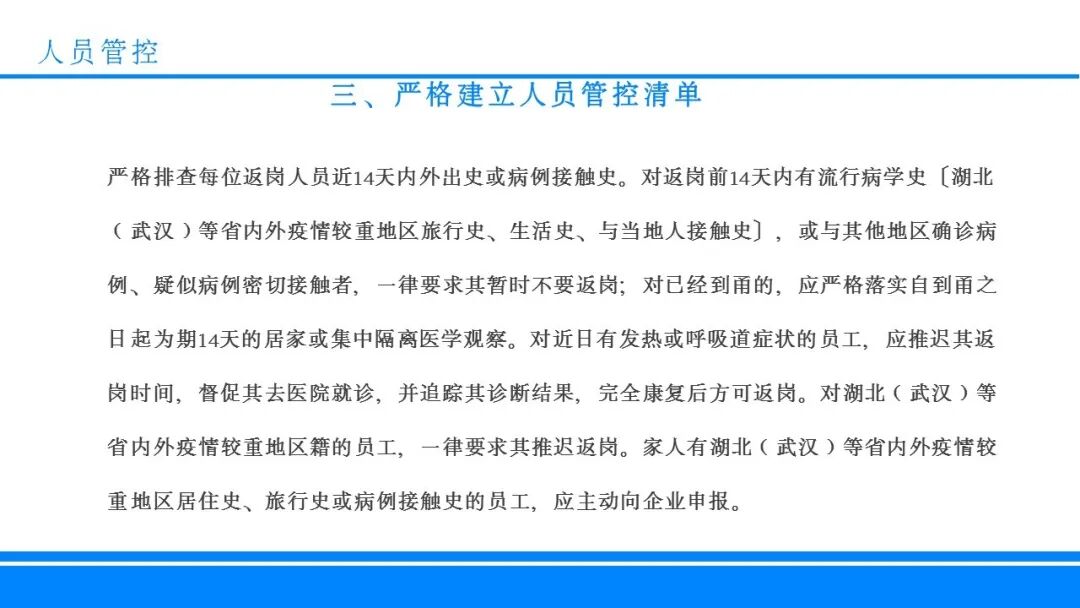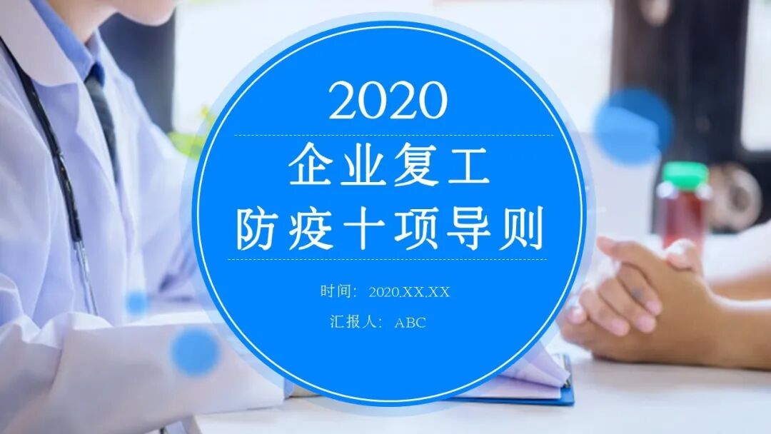 链接:企业复工 防疫十项导则|PPT https://mp.weixin.qq.com/s?__biz=MzA3NDc4NTA2Nw==&mid=2649308420&idx=3&sn=e905c7c1fc53cd55627225d25b4366fa&chksm=87671540b0109c5633a90d1a42687722008f962ce7793d6c72f05d56f50334c46aacdb5ce1c3&mpshare=1&scene=23&srcid=&sharer_sharetime=1582503821360&sharer_shareid=d9fdcc60a46951fed6d7a0bbdd004814#rd