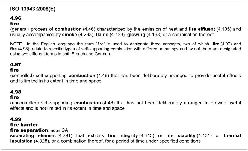 国家标准GB/T5907.1-2014《消防词汇-第1部分-通用术语》中对火灾的新定义是参照ISO 13943-2008 Fire safety --Vocabulery而修改的。国标的新定义比ISO的更简明。
