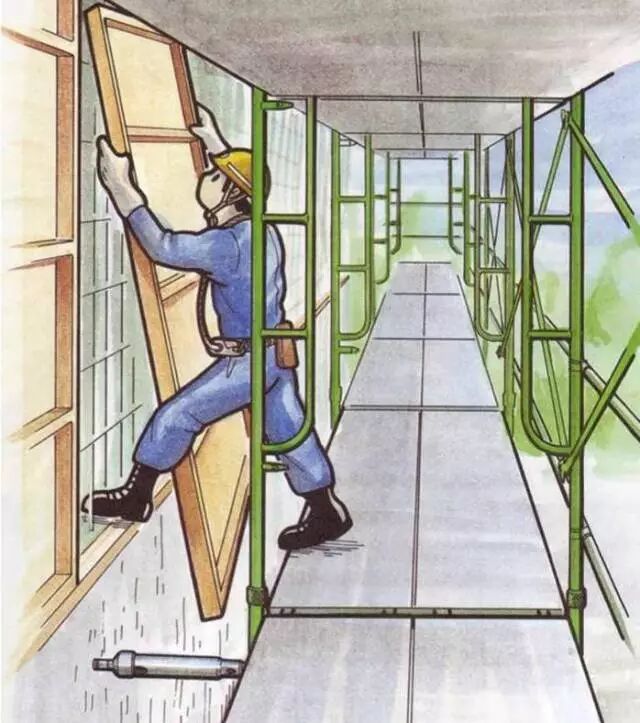 ④ 沿口构件不牢或踩断,人随之坠落。