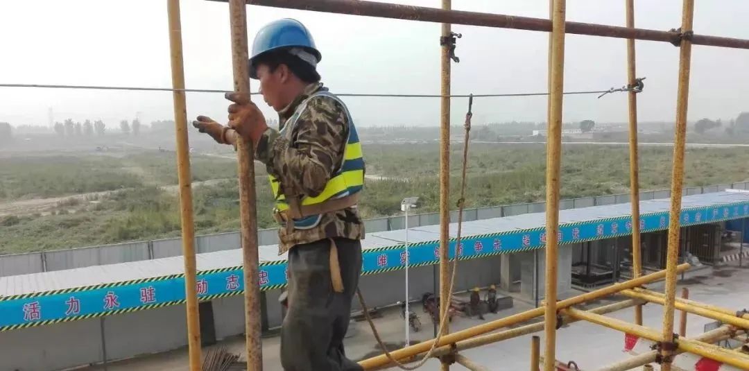 求表扬?下面看看施工现场脚手架搭设时安全带挂设做法: