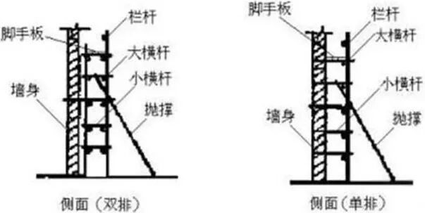 单排脚手架需要把抱杆支靠在墙上。