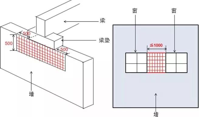 ⑤ 砖砌体门窗洞口两侧200mm(石砌体为300mm)和转角处450mm(石砌体为 600mm)范围内。