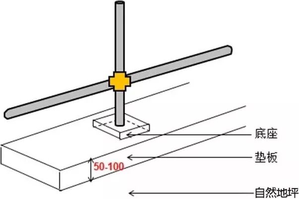 1、脚手架底面底座标高宜高于自然地坪50-100mm。
