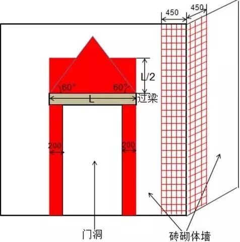② 过梁上与过梁两端成60°的三角形范围内及过梁净跨度1/2的高度范围内。