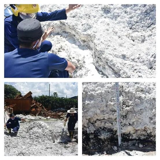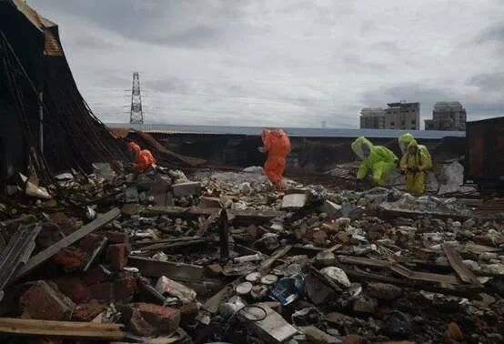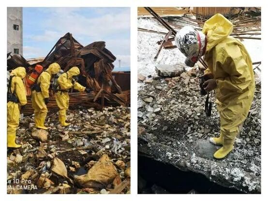 烈日下,39℃的高温,完全坍塌的现场一片狼藉。仓库里,30吨的漂白粉和大量的硫酸亚铁等在水和火的作用下发生反应,刺鼻的气味让人阵阵恶心。为了安全起见,调查人员不得不穿上密闭的防化服。身上是热汗、脚下是废墟,肩上是责任、心里是压力。他们想的就是一件事,找到真相!